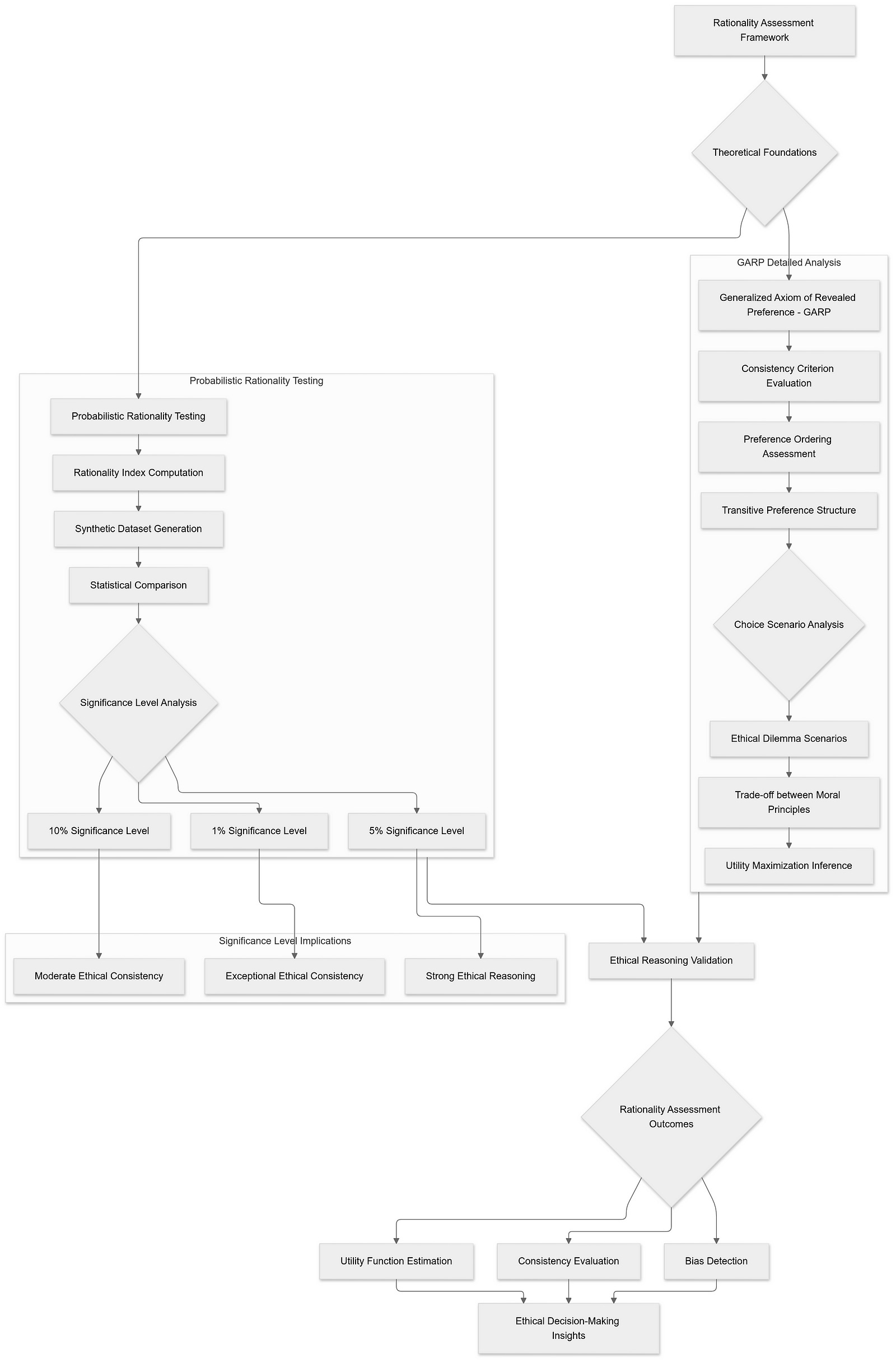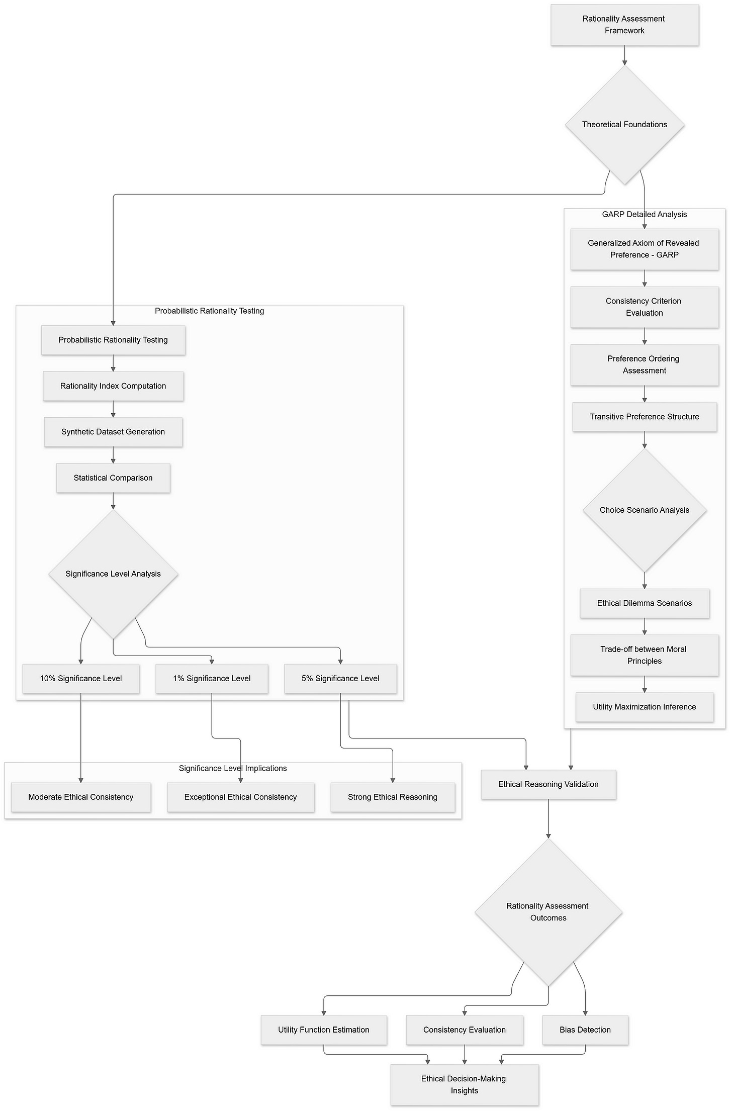 Understanding the ethical reasoning of Large Language Models (LLMs) necessitates not only identifying the moral principles they exhibit but also evaluating the consistency and rationality of their ethical judgments. To achieve this, robust frameworks and methodologies are essential. Two pivotal components in this assessment are the Generalized Axiom of Revealed Preference (GARP) and Probabilistic Rationality Testing. These tools provide a structured approach to discern whether LLM responses can be rationalized by a coherent utility-maximizing framework, thereby indicating the presence of stable and principled ethical reasoning.