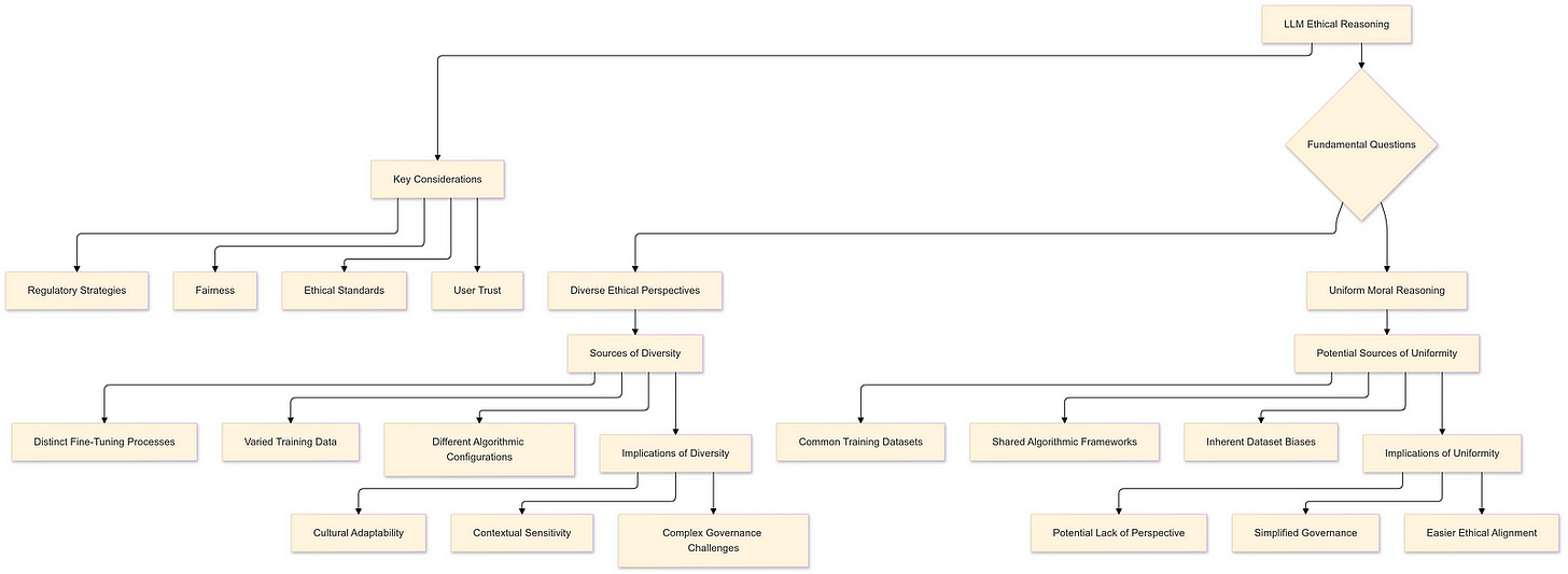 The exploration of uniform versus diverse moral reasoning in LLMs carries profound implications for AI governance, policy-making, and societal trust in AI technologies. The nature of ethical reasoning within AI systems directly influences how these technologies are perceived, trusted, and integrated into various aspects of human life.