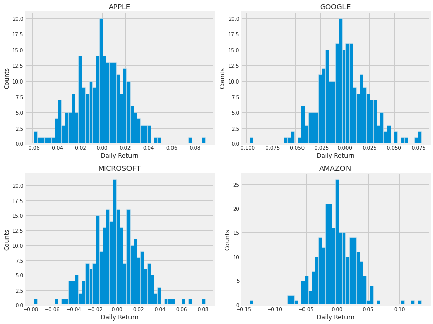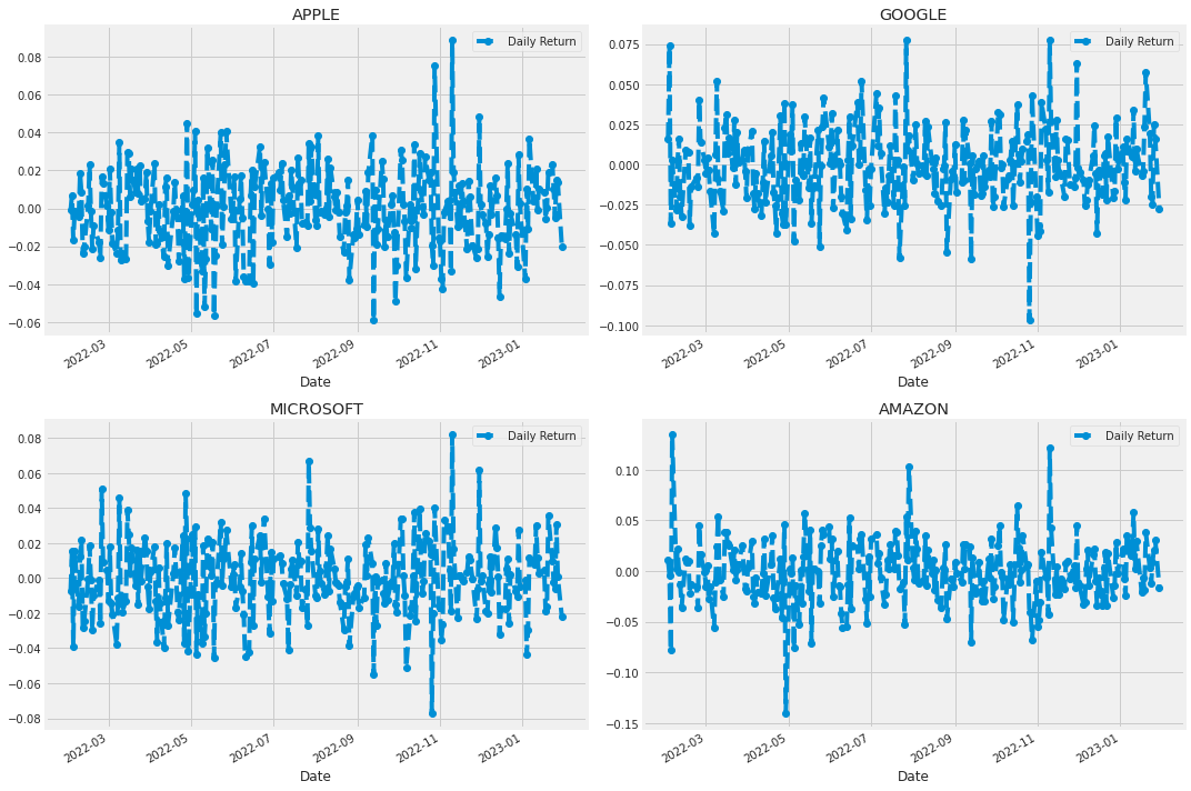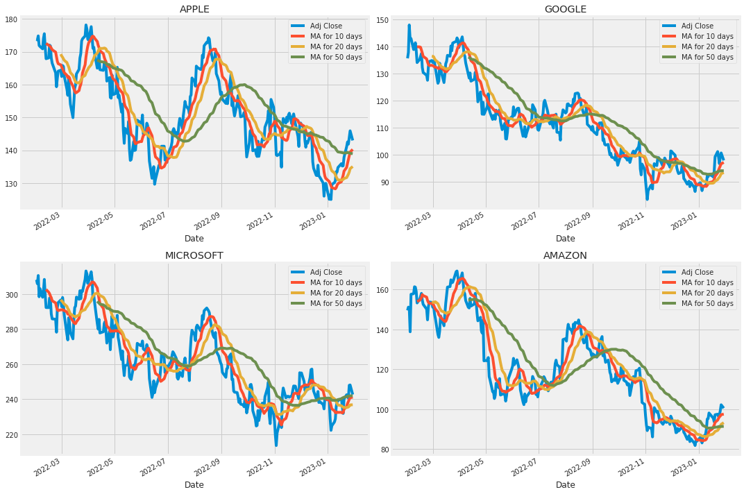 tech_list = ['AAPL', 'GOOG', 'MSFT', 'AMZN']