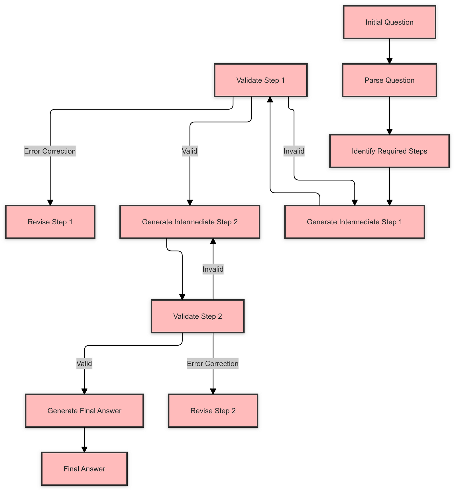 Self-Reflection: The model generates an answer, then re-evaluates it for correctness.