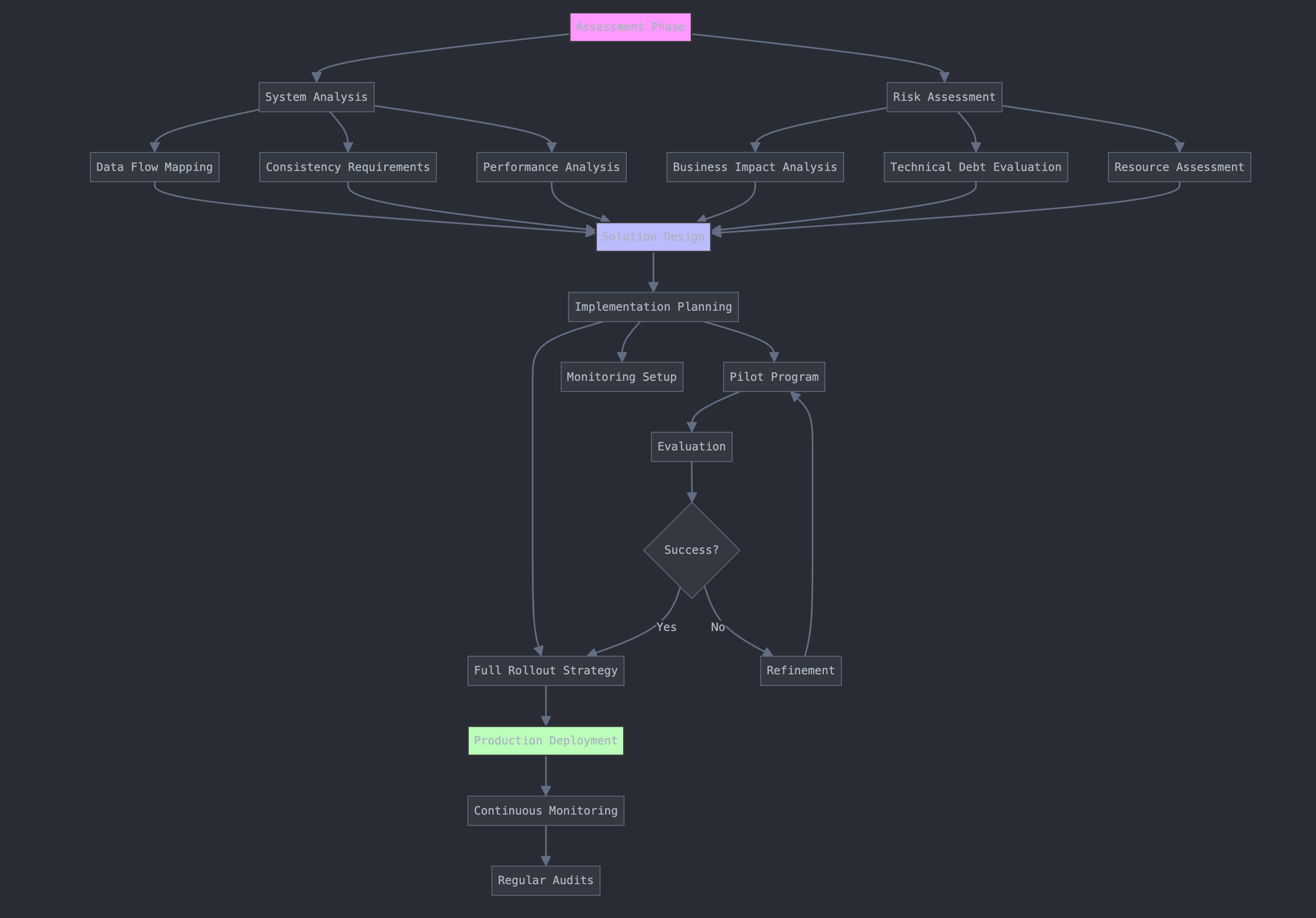 Risk assessment is crucial. Business impact analysis evaluates the potential consequences of data inconsistencies, guiding decision-making on where to focus resources. Technical debt evaluation identifies legacy systems or practices that may hinder consistency efforts. Assessing resource availability, both in terms of personnel and technology, ensures that the organization can support the initiative. Timeline constraints must be considered to align the project with business objectives and regulatory deadlines.