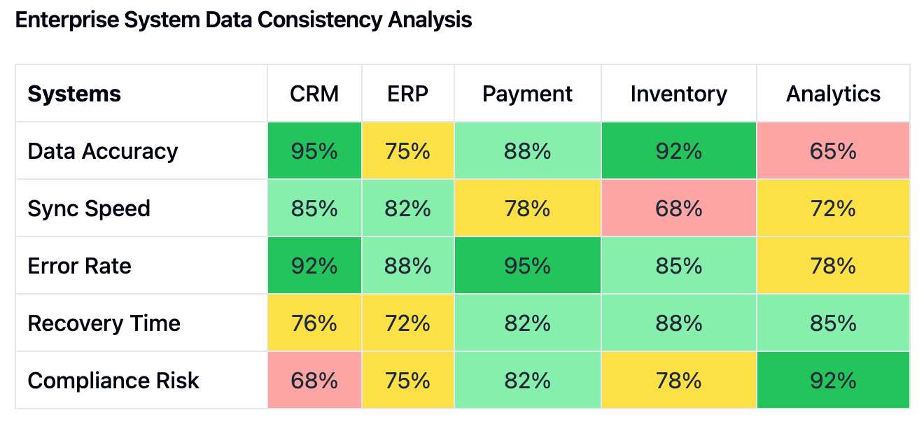 From a risk perspective, data inconsistencies can lead to regulatory compliance violations. For example, under the General Data Protection Regulation (GDPR), organizations must ensure that personal data is accurate and up-to-date. Failure to maintain consistent data can result in substantial fines. Customer experience also suffers when, say, a client updates their contact information, but different parts of the organization continue to use outdated details. This can lead to lost revenue opportunities and damage to the company's reputation.
